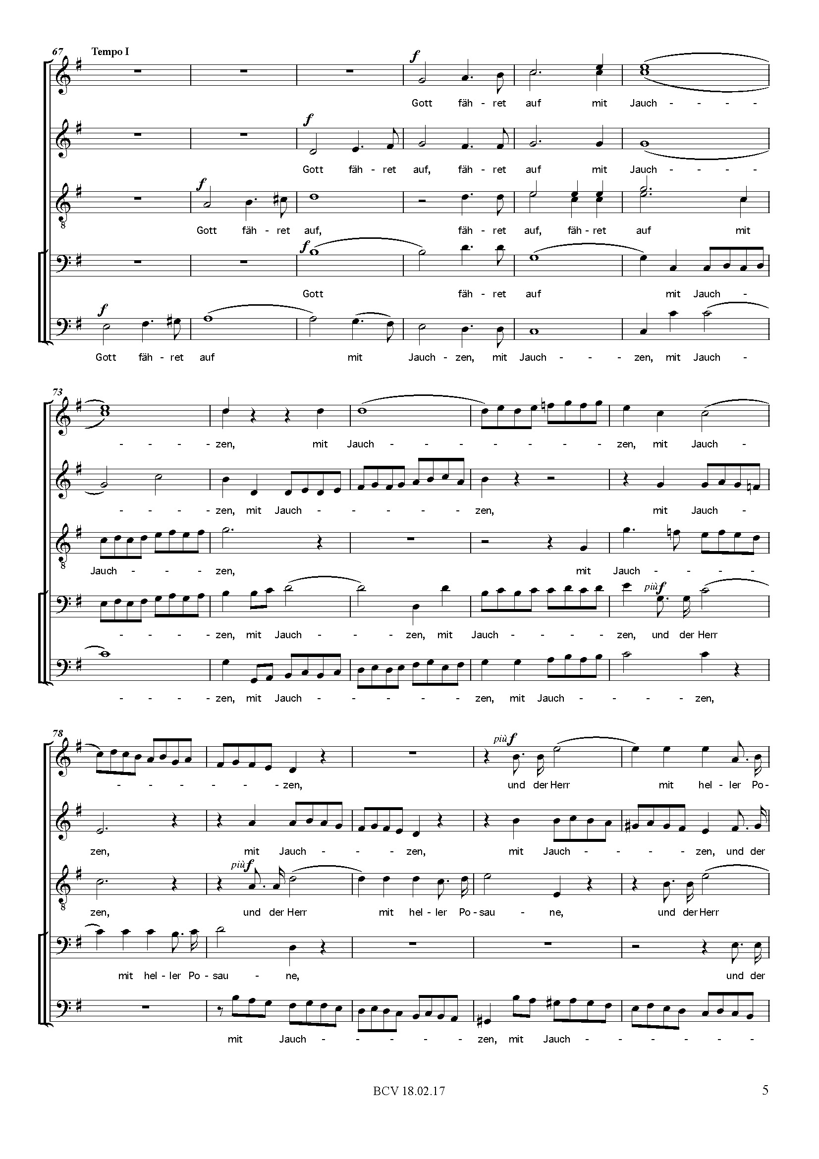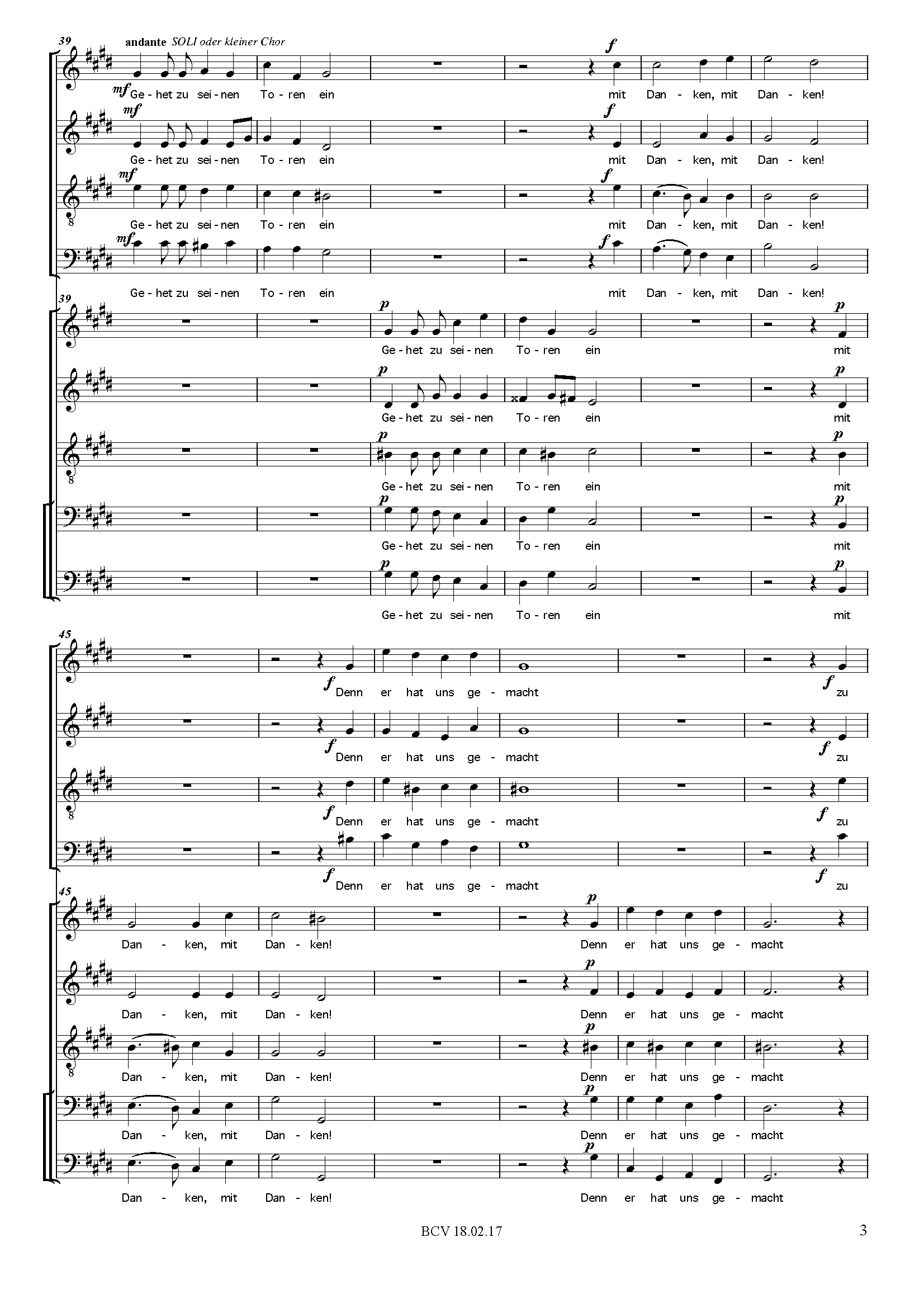 Frohlocket mit Händen, alle Völker, und jauchzet Gott mit fröhlichem Schall! Denn der Herr, der Allerhöchste, ist sehr erschrecklich, ein großer König auf dem ganzen Erdboden. Gehet zu seinen Toren ein mit Danken!