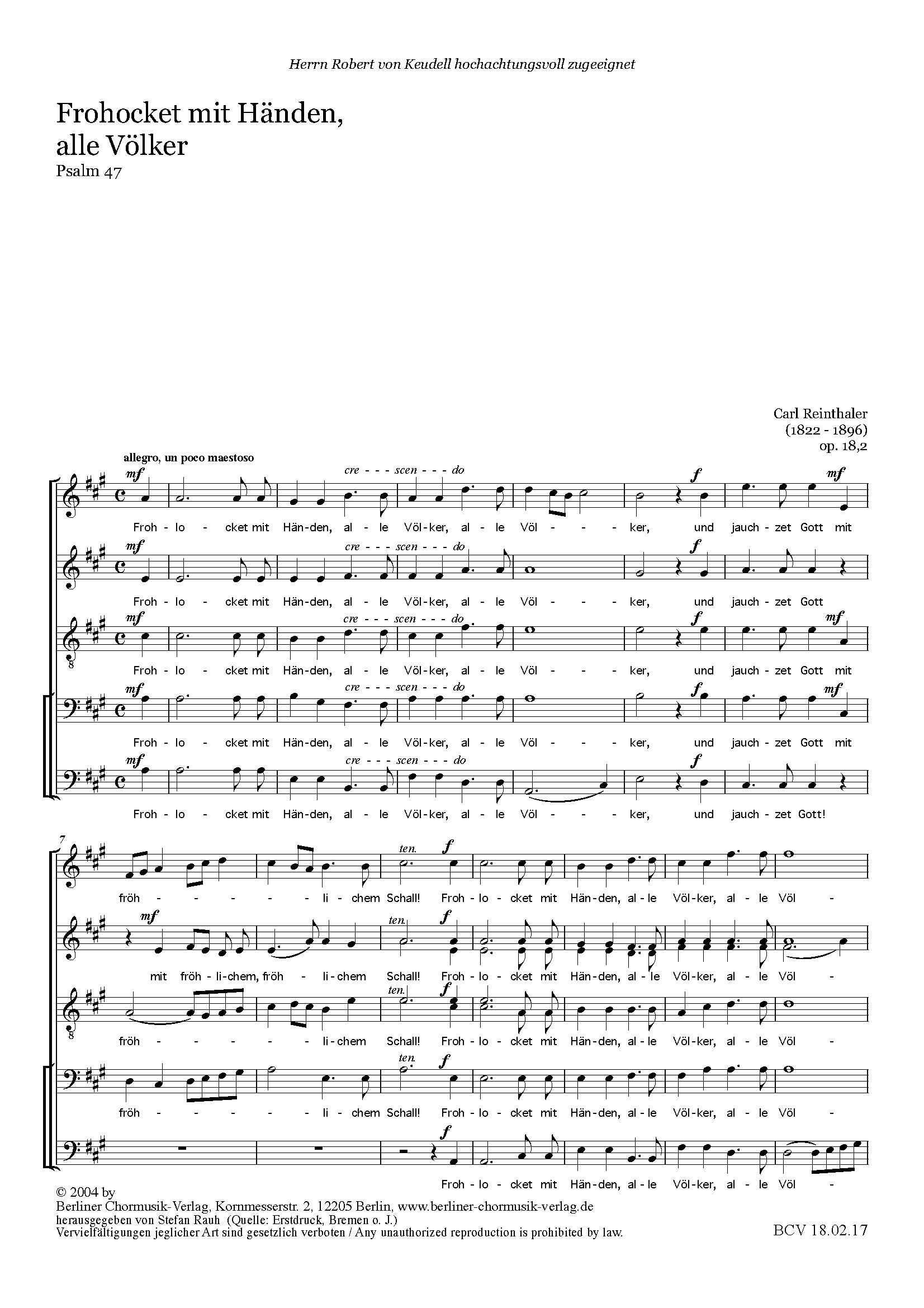 Kostenlose Probepartitur von 'Frohlocket mit Händen, alle Völker'.