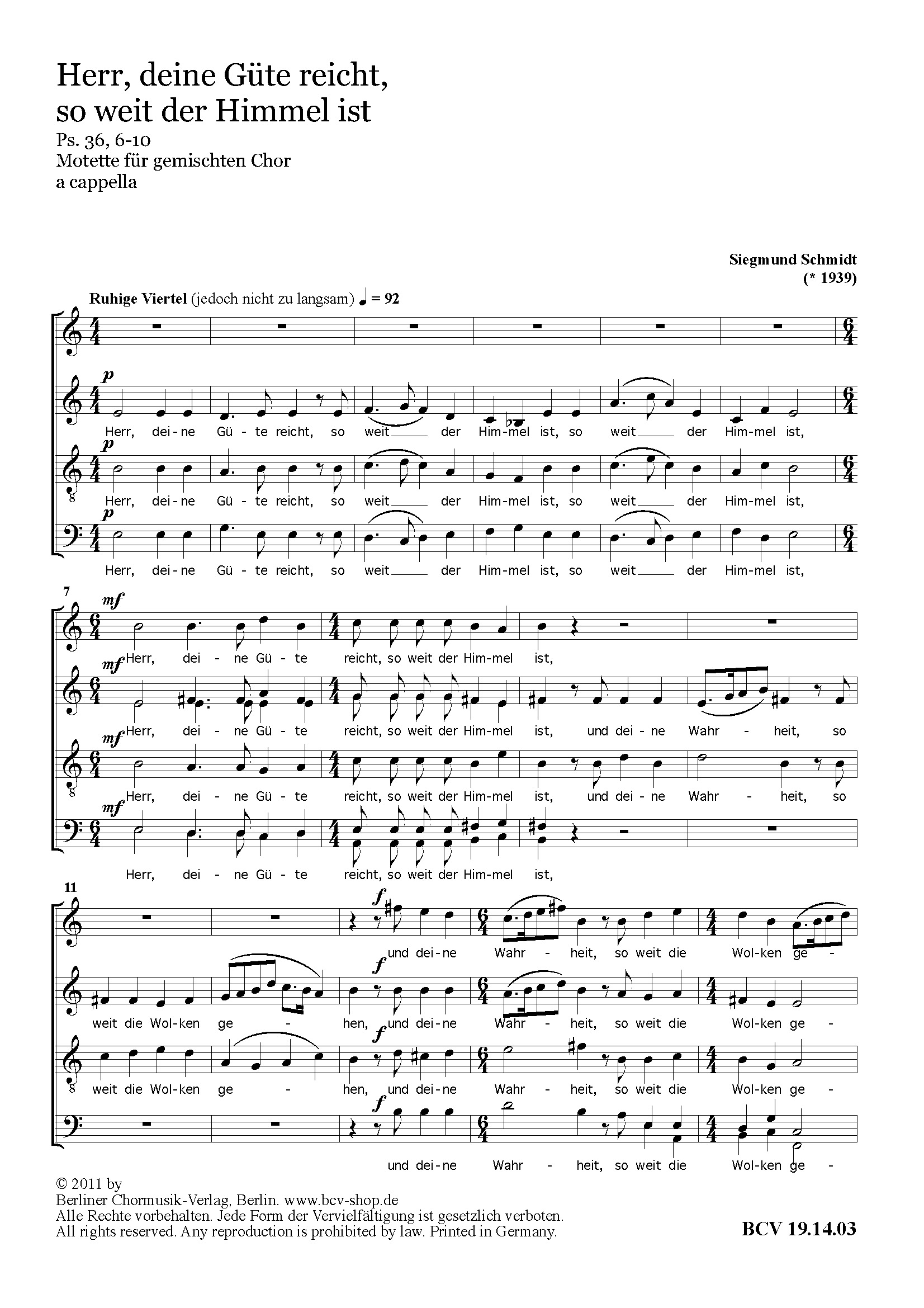 Kostenlose Probepartitur von 'Herr, deine Güte reicht so weit'.