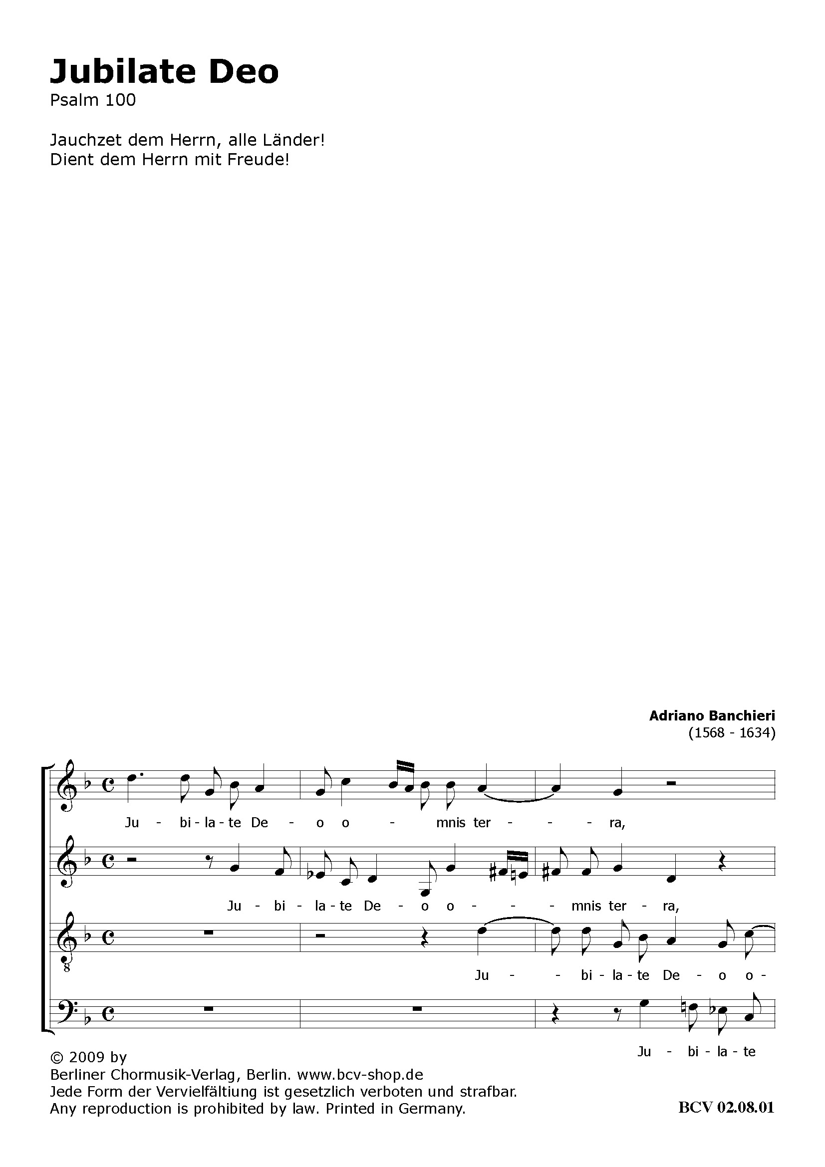 Kostenlose Probepartitur von 'Jubilate Deo'.