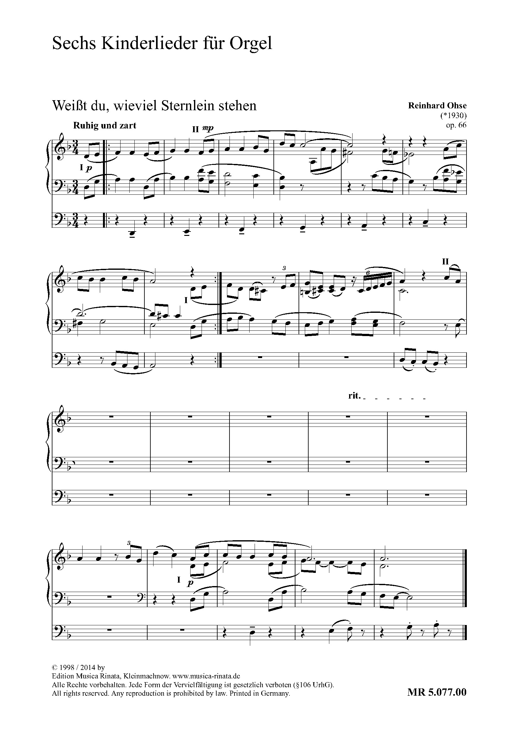 Kostenlose Probepartitur von 'Kinderlieder-Orgelstücke'.