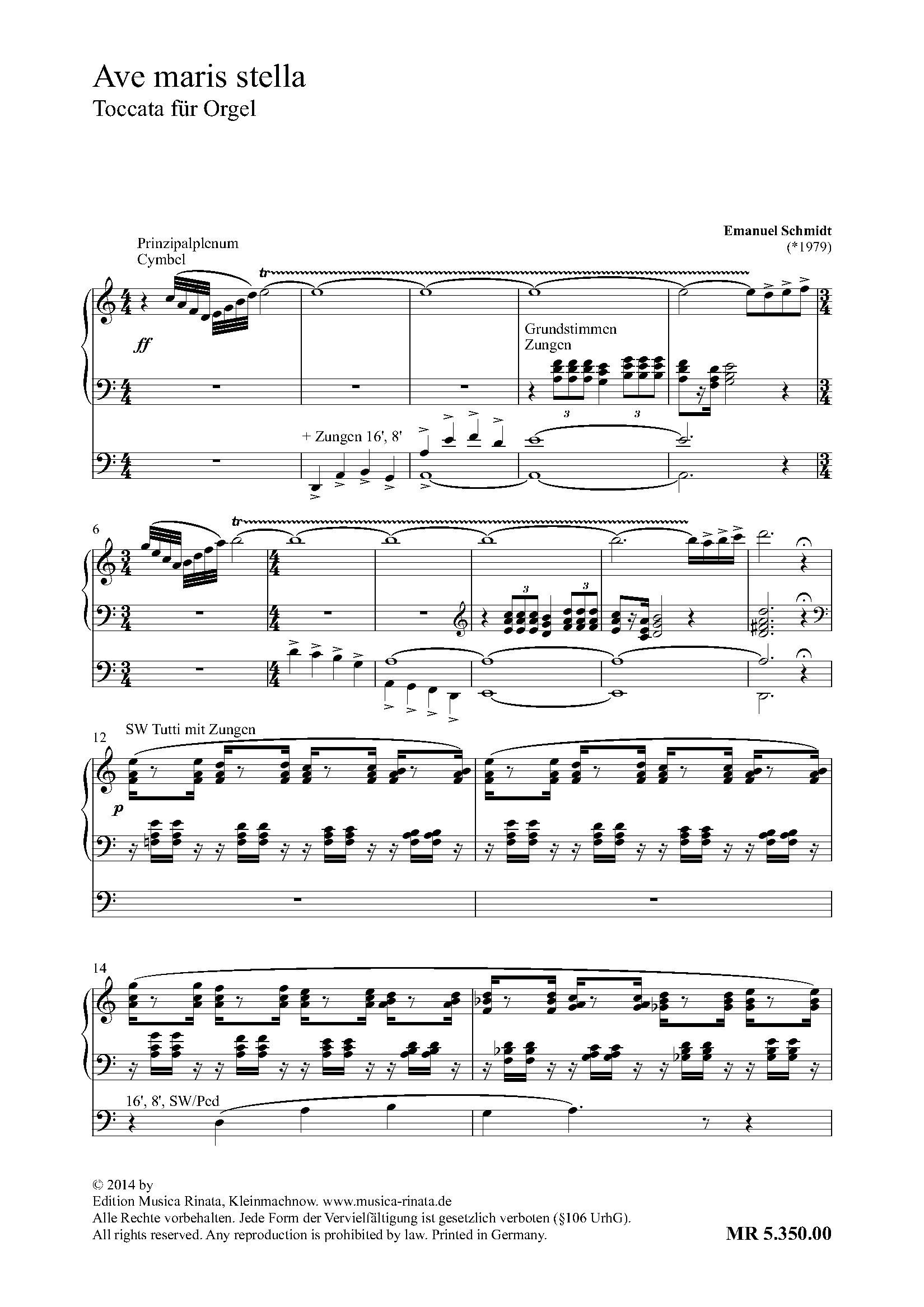 Kostenlose Probepartitur von 'Toccata Ave maris stella'.