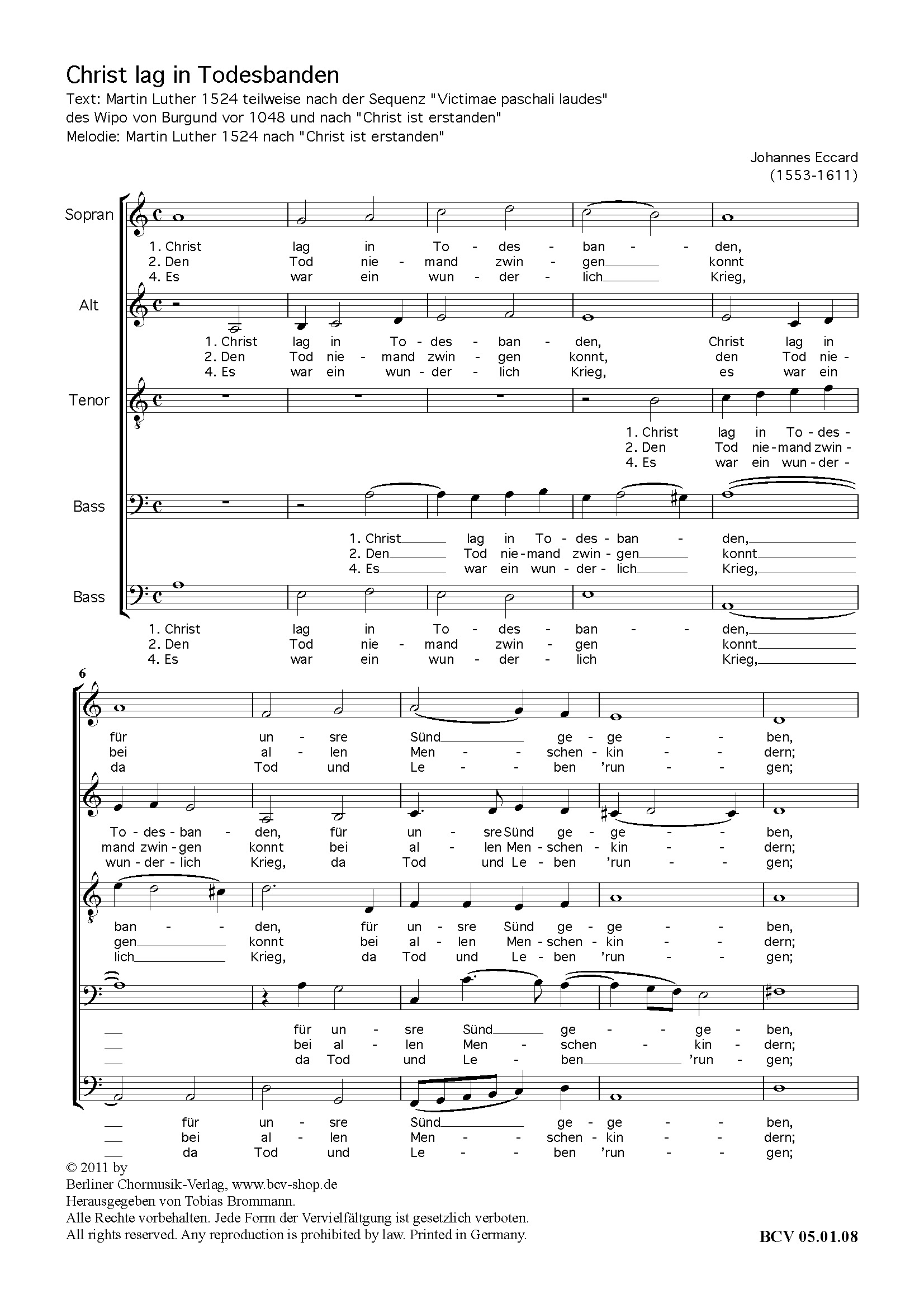 Kostenlose Probepartitur von 'Christ lag in Todesbanden'.
