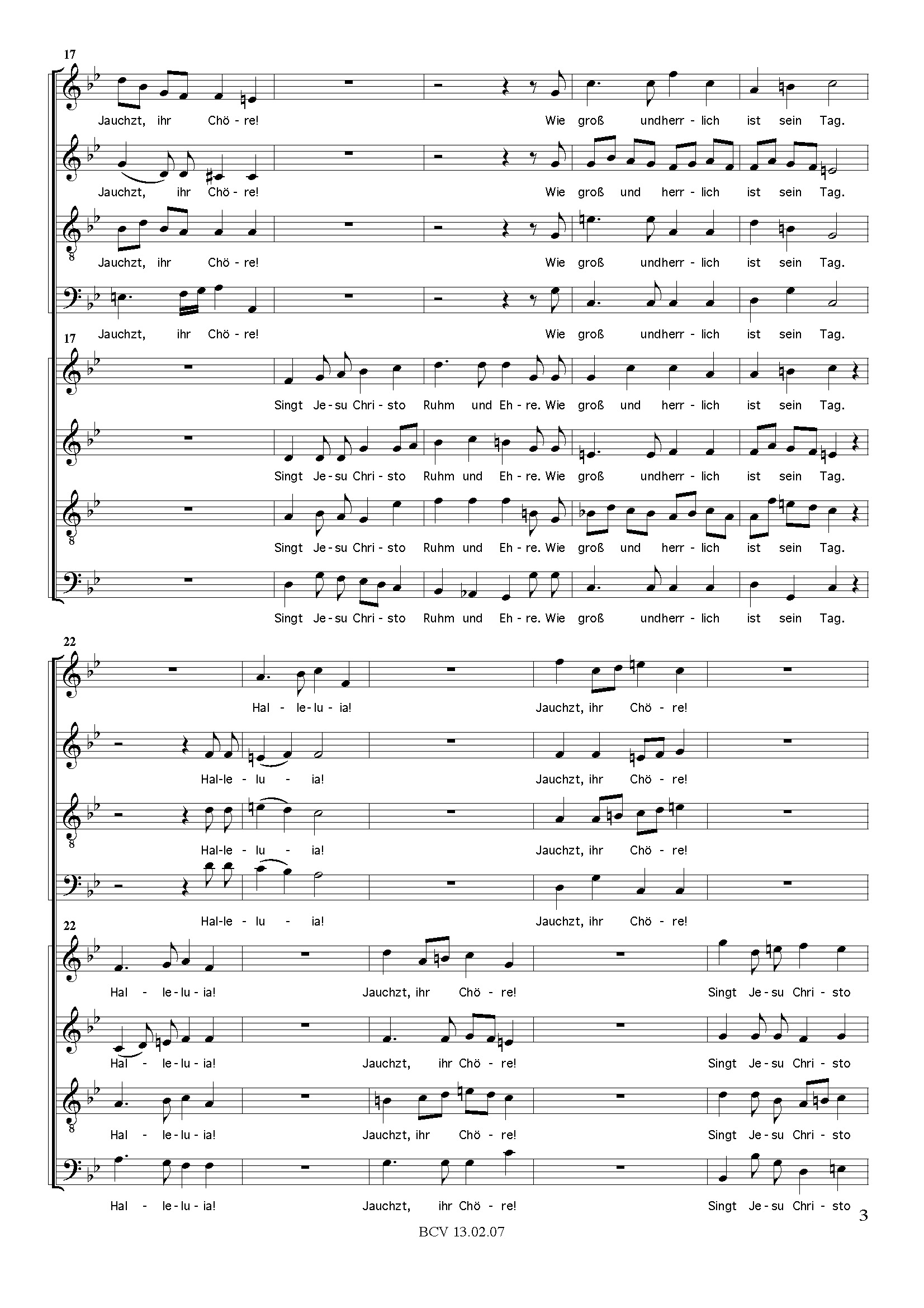 Kostenlose Probepartitur von 'Halleluia! Jauchzt, ihr Chöre!'.