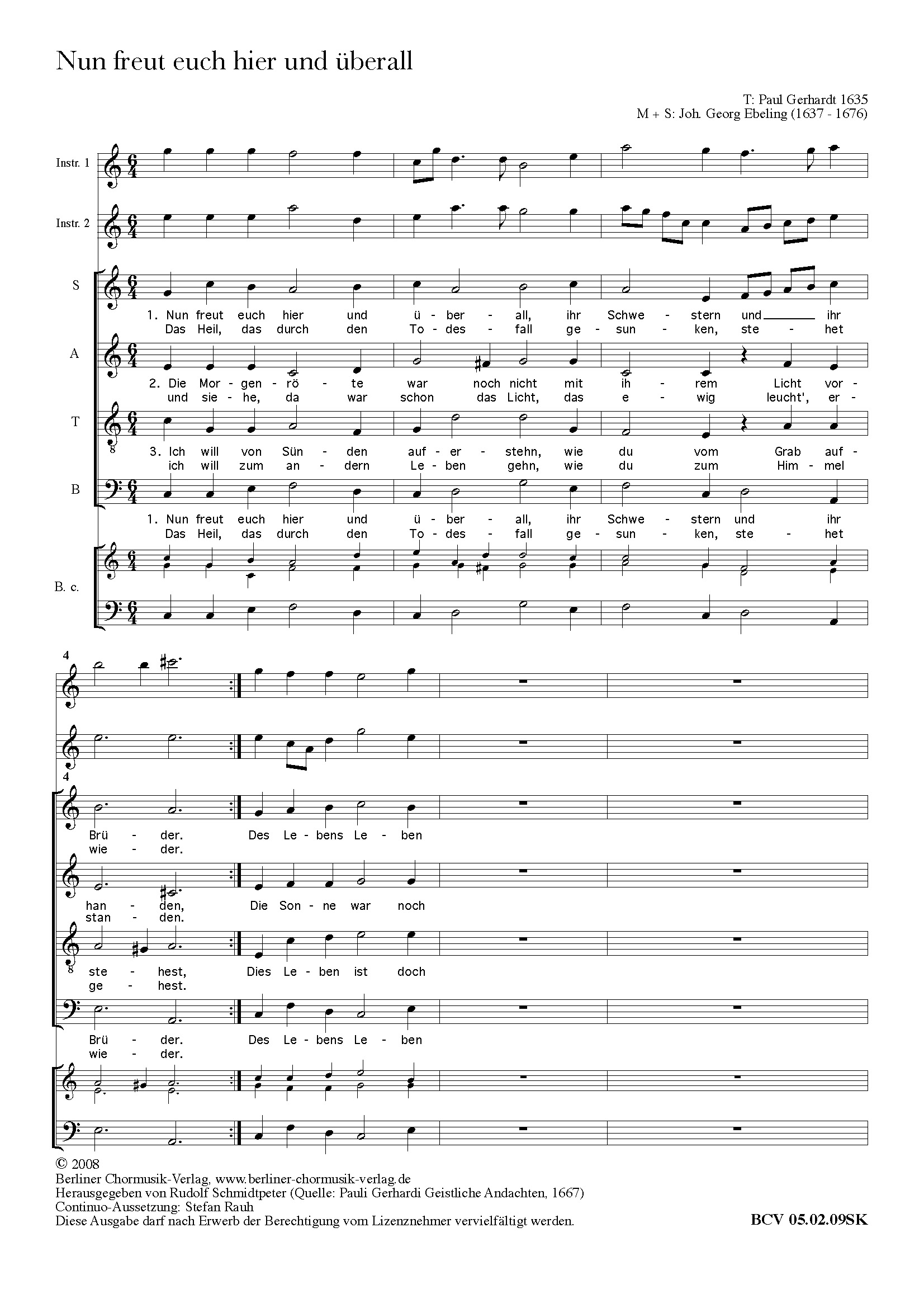 Kostenlose Probepartitur von 'Nun freut euch hier und überall'.
