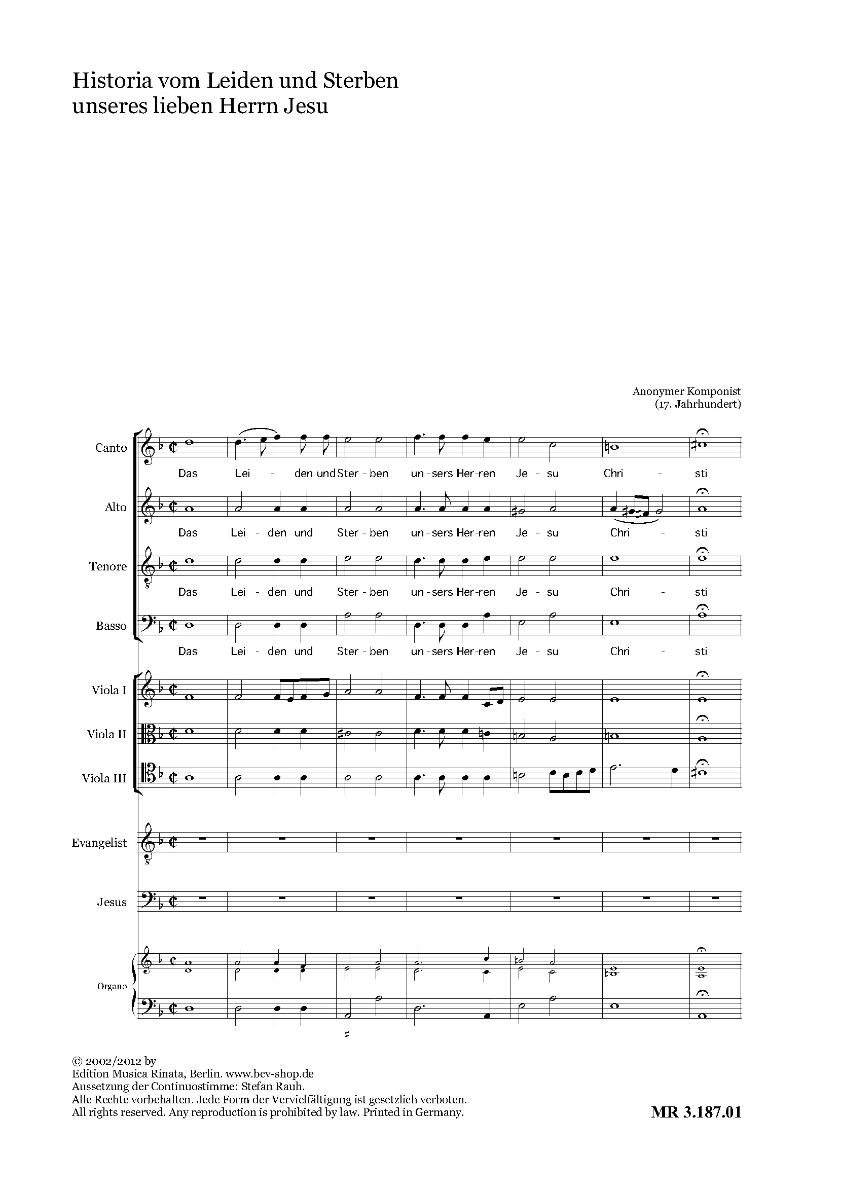 Kostenlose Probepartitur von 'Historia vom Leiden und Sterben u. l. Herrn (PART)'.