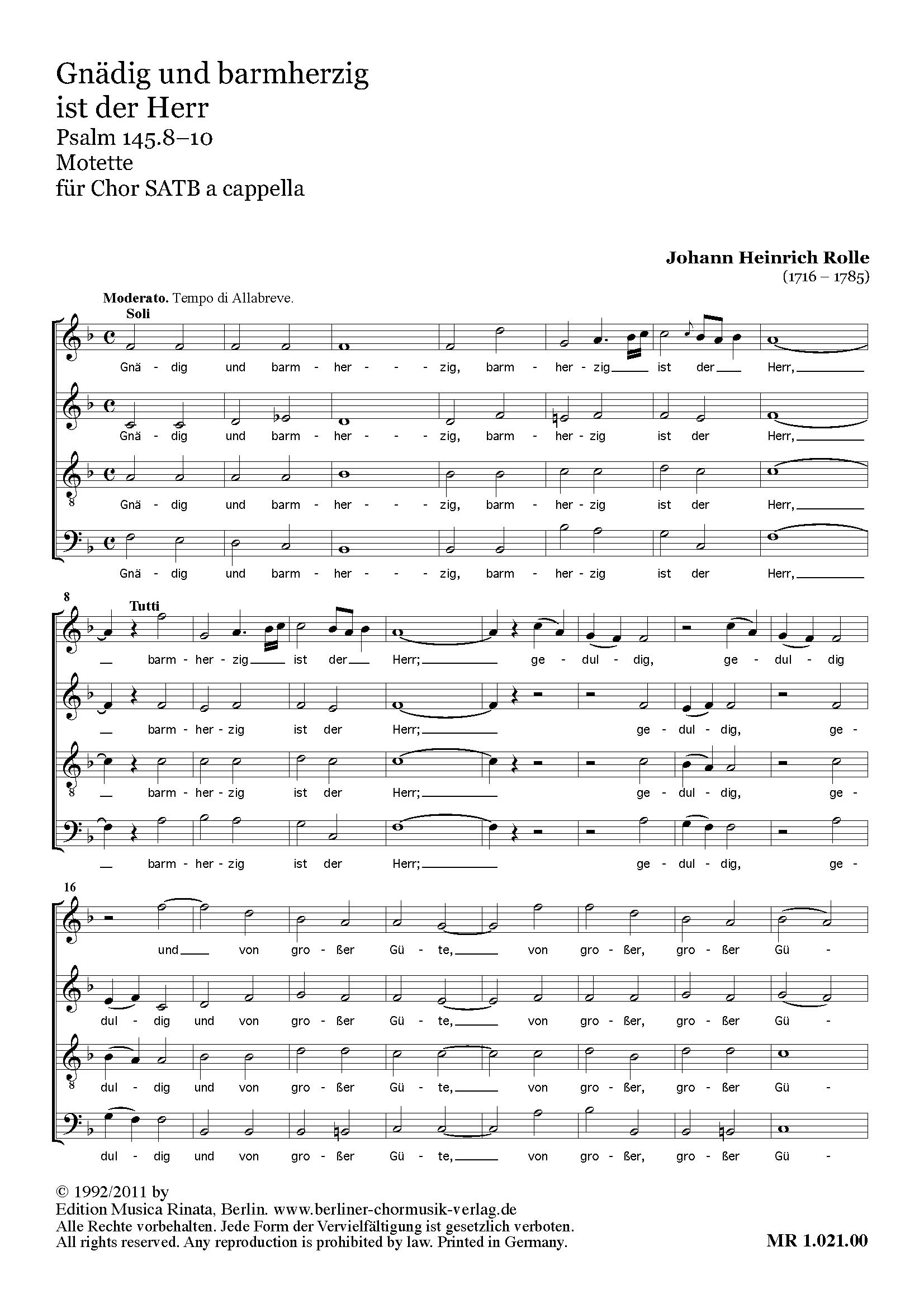 Kostenlose Probepartitur von 'Gnädig und barmherzig ist der Herr'.