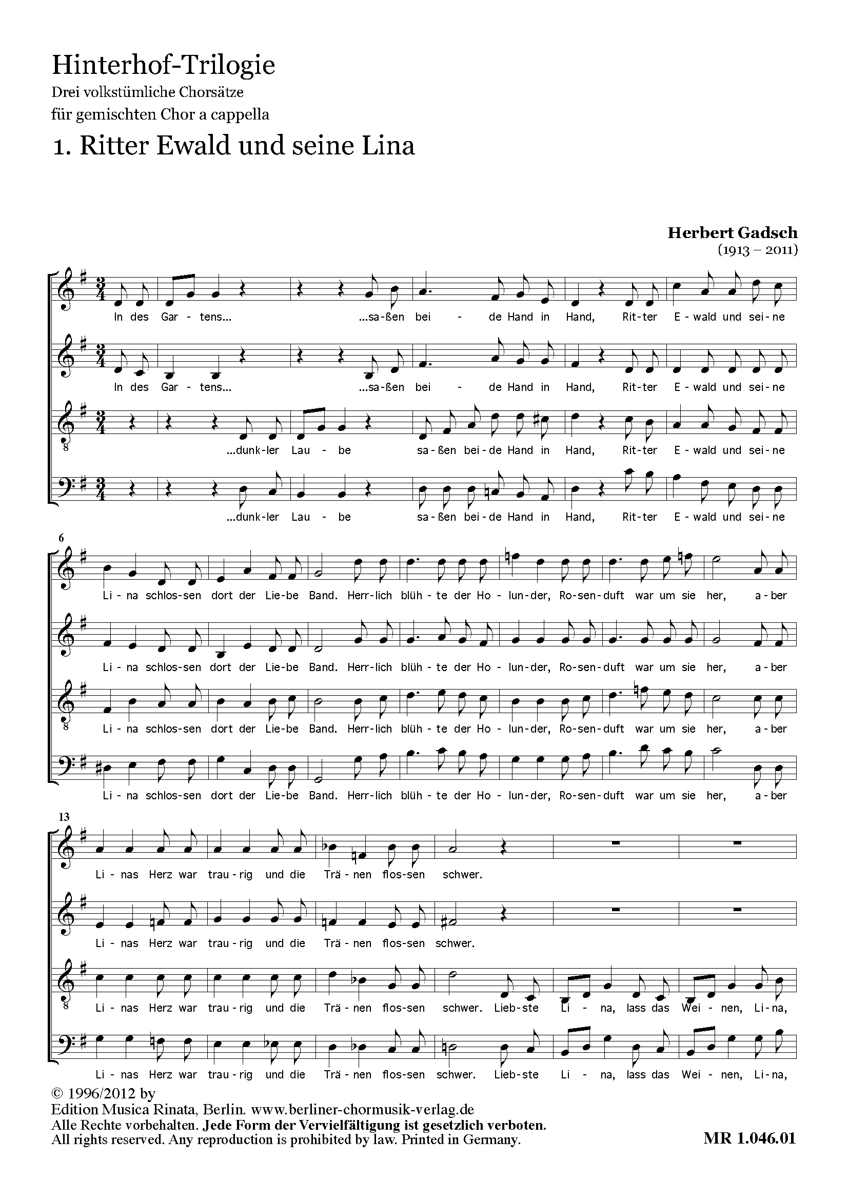Kostenlose Probepartitur von 'Ritter Ewald und seine Lina'.